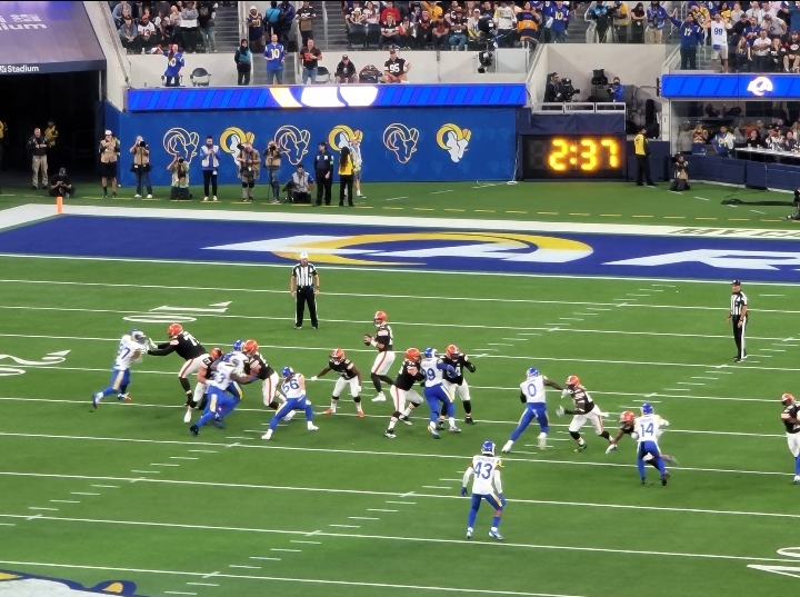 Veteran Browns stand-in quarterback Joe Flacco then made an untimely mistake as his throw was intercepted by the wonderfully named Rams safety John Johnson III and it was all over. The Rams downing the Browns 36-19.