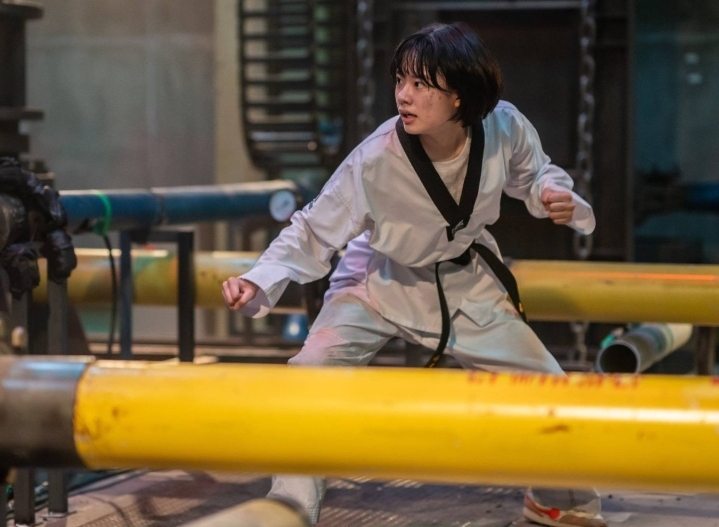 The overdramatic dad – portrayed amusingly by Oh Jung-se – owns a Taekwondo school and steals an early scene by setting a practice to the sound of Momoland’s “Boom Boom” (a guilty K-Pop personal favourite while I lived in South Korea).