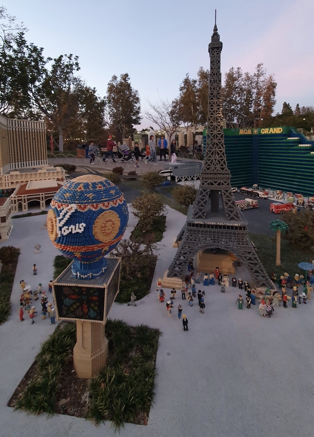 Split into different sections it’s the attention to detail that immediately catches the eye: from the entrance signs to the details of the hotel next to the park to the cornucopia of different statues and monuments constructed entirely from thousands of different Lego pieces.