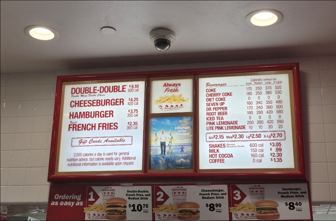 Priced reasonably and with just three main items – a hamburger, cheeseburger and double-double – the relatively sparse menu is a huge advantage.